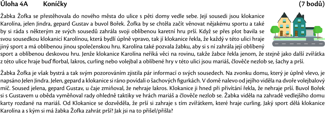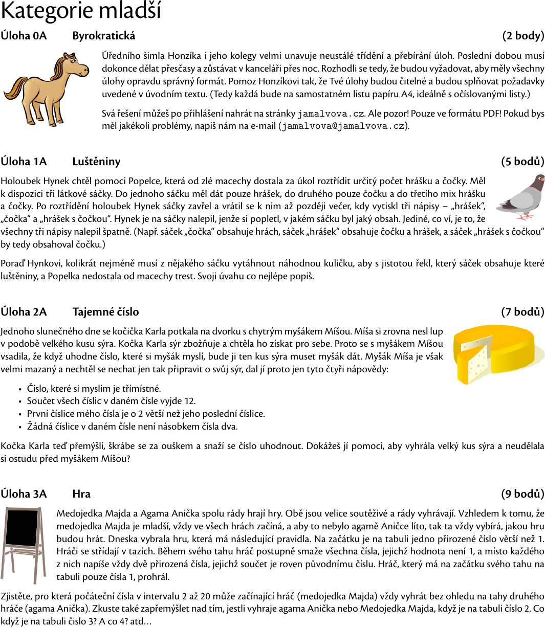 Zadání pro toto kolo si můžeš stáhnout i v PDF podobě. Čas na řešení máš do 24.11.2025. Starší zadání, ukázková řešení a výsledkové listiny jsou v sekci Historie. Tvé řešení by mělo dodržovat pokyny ze zadání. Pokud nevíš jak by mělo vypadat, koukni na náš ukázkový formát řešení