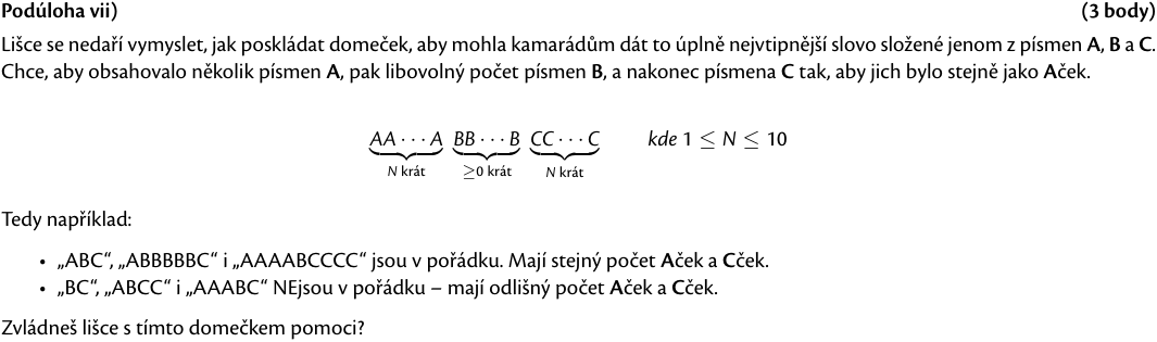 Zadání pro toto kolo si můžeš stáhnout i v PDF podobě. Čas na řešení máš do 13.02.2026. Starší zadání, ukázková řešení a výsledkové listiny jsou v sekci Historie. Tvé řešení by mělo dodržovat pokyny ze zadání. Pokud nevíš jak by mělo vypadat, koukni na náš ukázkový formát řešení