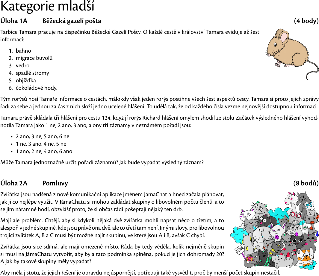 Zadání pro toto kolo si můžeš stáhnout i v PDF podobě. Čas na řešení máš do 03.05.2026. Starší zadání, ukázková řešení a výsledkové listiny jsou v sekci Historie. Tvé řešení by mělo dodržovat pokyny ze zadání. Pokud nevíš jak by mělo vypadat, koukni na náš ukázkový formát řešení
